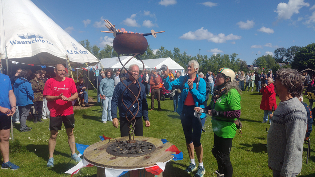 Wandelaars uit Leermens, ’t Zandt, Zeerijp, Eenum, Oosterwijtwerd en Zijldijk brachten op 5 mei een brandende fakkel naar Landgoed DeCamping in ’t Zandt. Hier werden de zes vlammen samengevoegd tot één grote Vrijheidsvlam. Een symbool van saamhorigheid.
